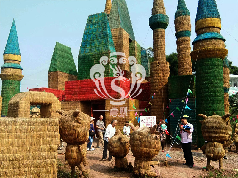 現(xiàn)在的精致稻草人藝術通常是由專業(yè)美術老師的造型放樣,然后由焊工師傅焊接出立體造型造型,然后以稻草或者稻草繩為材料編捆制作而成。