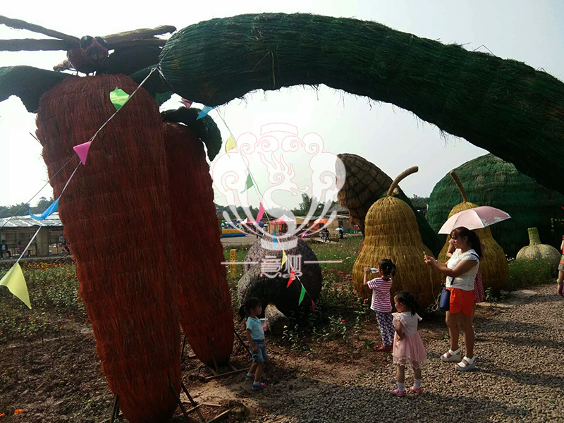 現(xiàn)在的精致稻草人藝術(shù)通常是由專業(yè)美術(shù)老師的造型放樣,然后由焊工師傅焊接出立體造型造型,然后以稻草或者稻草繩為材料編捆制作而成。