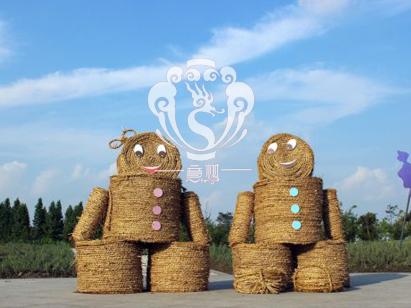 現在的精致稻草人藝術通常是由專業美術老師的造型放樣,然后由焊工師傅焊接出立體造型造型,然后以稻草或者稻草繩為材料編捆制作而成。