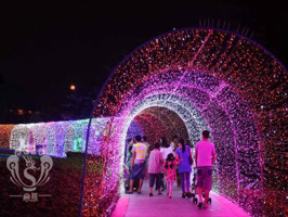 6月20日晚,自貢市意樹文化傳播有限公司用18000盞彩燈打造的“時光隧道”、“海底世界”、“富士山”吸引市民眼球。當晚,眾多市民慕名來到位于重慶大學城的金科廊橋水鄉濕地公園賞燈,公園內的五彩燈飾吸引市民駐足拍照留念.