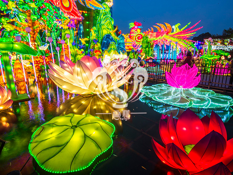 唐朝以后,北京、西安、洛陽、蘇州、杭州、福州、潮州、成都、廣州、泉州等十大城市的花燈活動尤為盛行。到了宋代,花燈發(fā)展到了新的高峰,樣式變化萬千?!稏|京夢華錄》記載:汴京(今開封)宮廷扎做燈山,有普賢、文殊佛騎獅子、白象等燈,佛像的手能活動。工匠們用轆轤絞水,把水送到燈山高處的大木柜內(nèi),讓水從佛像的手臂澆出,狀如瀑布。正如崔液詩中所說:“燈神佛火百輪張,刻象圖形七寶裝。影里如開金口說,空中似放玉豪光?!蹦纤螌m廷扎做琉璃燈山,高達(dá)五丈,燈山上的各種人物燈彩栩栩如生。《武林舊事》中說:“那時燈品至多,精妙絕倫。”有同玻璃球一樣的璀璨的無骨燈,有灌水轉(zhuǎn)機、百物齊動的機關(guān)燈,有刻鏤金珀、飾以玳瑁的魷魚燈,有以五色珠為網(wǎng)、下垂流蘇的珠子燈,有白玉制作、繪嫦娥奔月、稀釋采蓮、劉海戲蟾故事的人物燈,還有制作精奇的各式工藝彩燈、宮燈、壁燈、吊燈、花卉燈、動物燈、山水燈、玩具燈,甚至有仿龍舟、鰲山、亭臺樓閣的造型燈,以及燈塔、燈山、燈牌坊、過街燈等等。這些燈爭艷斗奇、琳瑯滿目、瑩煌炫轉(zhuǎn)、照耀天地。