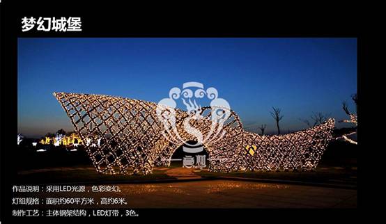 走進現場看到3000萬盞璀璨寶石般的彩燈把棋盤山裝點成一個夢幻世界。炫目迷人的“時光隧道”,猶如夢開始的地方,穿越隧道闖進奇幻的迷霧森林,夢幻旅程由此悄然開始……高達6米的夢的翅膀,山頂皚皚白雪凸顯著圣潔,乘風破浪的愛情號,快帶著他(她)駛進愛的海洋;灰姑娘的水晶鞋,震撼的燈海等20多種造型,那一望無際的燈海仿佛寬廣的海洋溫柔的擁抱你我……