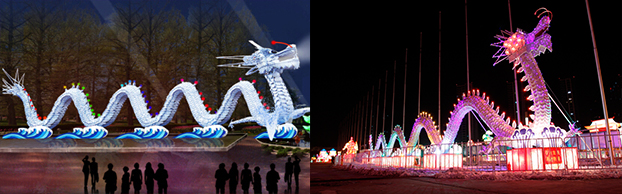 本屆花燈展將融傳統(tǒng)的制燈工藝與現(xiàn)代科學(xué)技術(shù)于一體,通過LED電腦芯片程序控制燈光動感,聲效芯片控制,動作芯片控制情節(jié)動作等,80余組大型燈組,規(guī)模宏大、氣勢恢宏,把太原多姿多彩的城市風(fēng)情、民俗風(fēng)物,經(jīng)花燈特有藝術(shù)手法和高科技手段精準獨到鋪陳,靈動細膩的再現(xiàn),惟妙惟肖的演繹給了觀眾。眾多花燈中最亮眼的還數(shù)名為“祥和龍城”的“燈王”,占地近2500平米,高20余米,行人可在花燈下自在穿梭,可謂“燈樓高百尺、手可摘星斗”;室內(nèi)6號展館的100多件仿真恐龍,把游客仿佛帶回到了“侏羅紀”時代,其間的動感6D電影讓大家在各種驚險、刺激的環(huán)境里親身體驗了讓血液沸騰、讓心臟尖叫、讓細胞歡呼的真實感,深受歡迎。