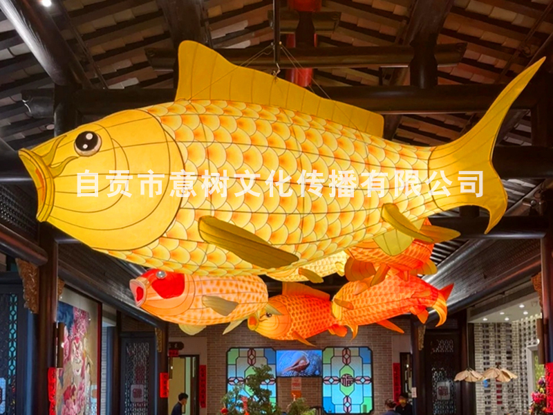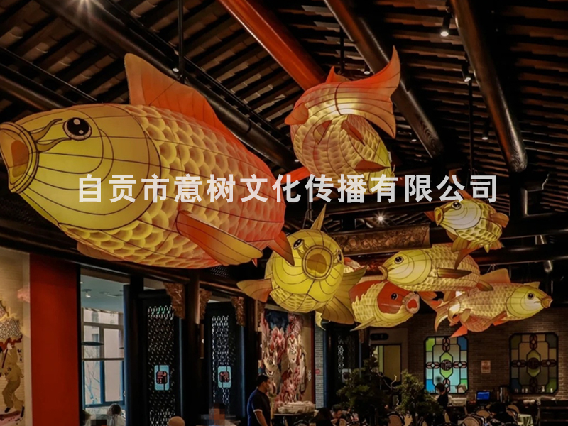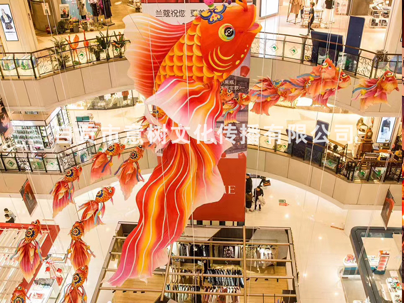 自貢市意樹文化傳播有限公司,采用獨特的絲藝造型,在形態上變化多變。經過一個月工人的努力,為重慶某個大型商場制作的中庭魚燈終于安裝落地完成,深深的受到商場領導的稱贊,也得到了商場顧客的立足觀賞、點贊。