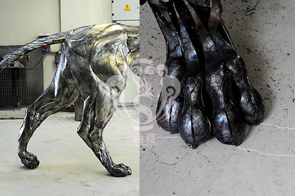 這件雕塑作品一經完成,引來一片驚嘆。 “這兩年來,我們創作的最大的雕塑是高8米的變形金剛‘大黃蜂’,它是由一臺報廢的桑塔納2000整車拆解,重新組裝完成的,現在在常德清水湖。這個作品難度最大,我們搭建了一個3層樓高的架子,工人高空作業平衡難度極大。”